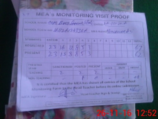 | Attendance Register | Head Teacher | MEA with School | Visit Proof |
