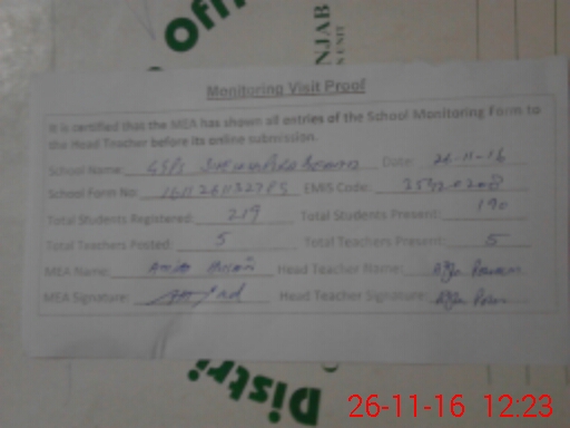 | EMIS Code: 35420208 | Name of School: GGPS SHEIKHUPURA BEDAD | |||