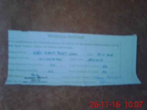 | Attendance Register | Head Teacher | MEA with School | Visit Proof |