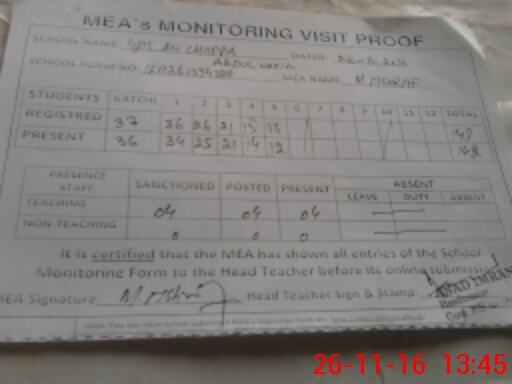 | EMIS Code: 36410261 | Name of School: GPS ALI CHAPPA, P/O 9-B/8-R, ABDUL HAKIM | |||