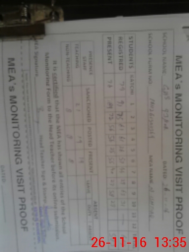| Attendance Register | Head Teacher | MEA with School | Visit Proof |