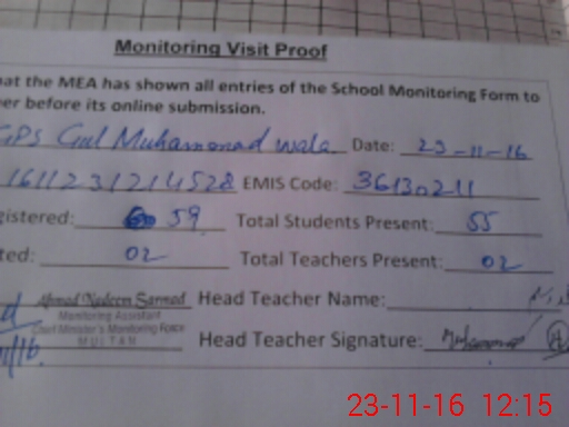 | EMIS Code: 36130211 | Name of School: GPS GUL MUHAMMAD WALA MULTAN | |||