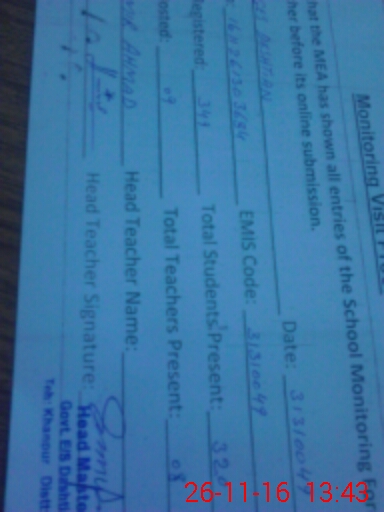 | Certified that this School was Inspected by the Undersigned MEA/DMO Today and the Information Stated Above is as Per Record. | |||||