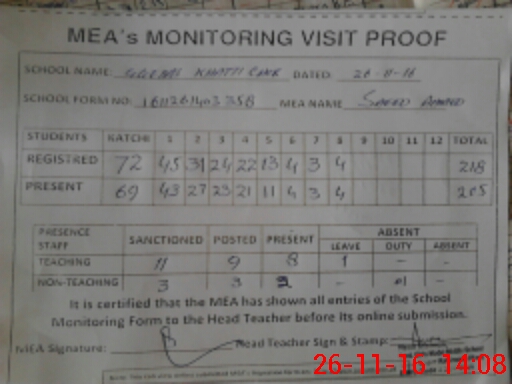 | Attendance Register | Head Teacher | MEA with School | Visit Proof |