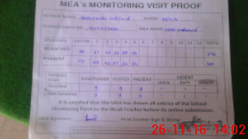 | Attendance Register | Head Teacher | MEA with School | Visit Proof |