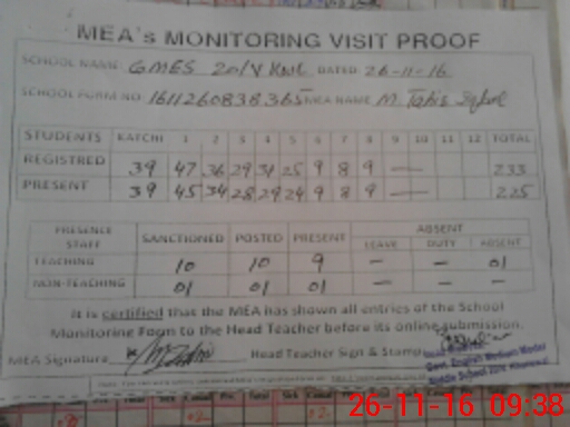 | Certified that this School was Inspected by the Undersigned MEA/DMO Today and the Information Stated Above is as Per Record. | |||||