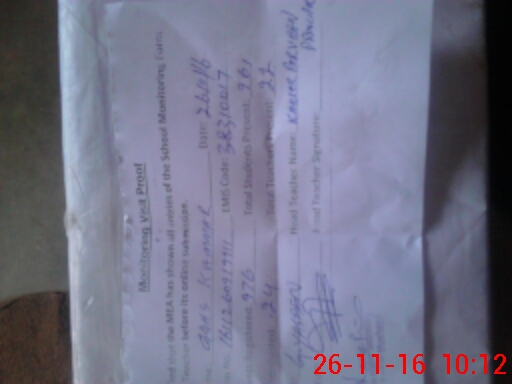 | Monitoring Date: 26-11-2016 | Start Time: 26-11-2016 09:19 AM | End Time: 26-11-2016 10:13 AM | Name of MEA: Gh**** Ya**** (R**** | |