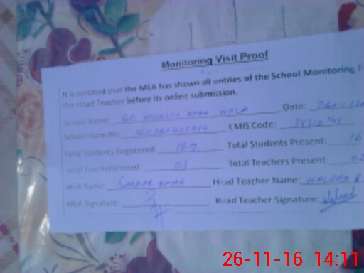 | Certified that this School was Inspected by the Undersigned MEA/DMO Today and the Information Stated Above is as Per Record. | |||||
