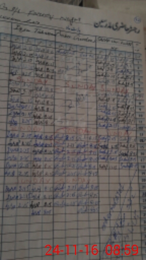| CNIC | Full Name | Designation | R/C | Absence During Last Calender Month |