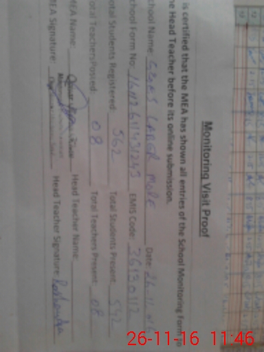 | Certified that this School was Inspected by the Undersigned MEA/DMO Today and the Information Stated Above is as Per Record. | |||||