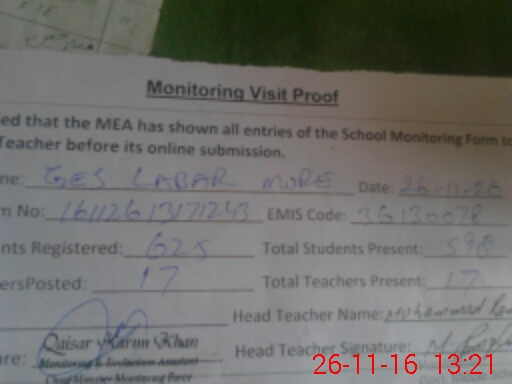 | Attendance Register | Head Teacher | MEA with School | Visit Proof |
