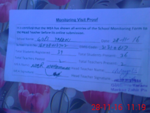 | EMIS Code: 31310617 | Name of School: GGPS YARANI | |||