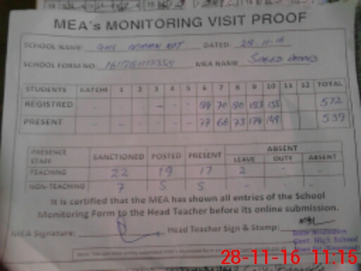 | Attendance Register | Head Teacher | MEA with School | Visit Proof |