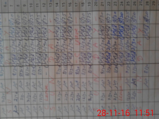 | CNIC | Full Name | Designation | R/C | Absence During Last Calender Month |