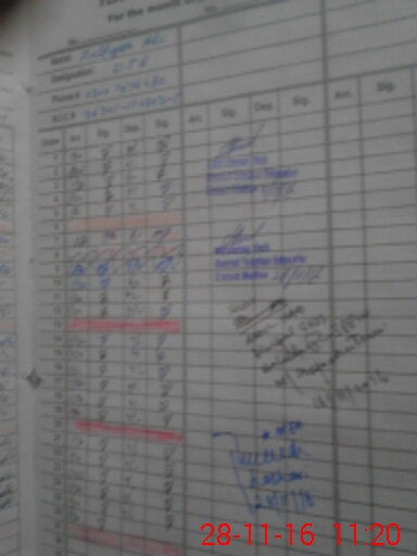 | CNIC | Full Name | Designation | R/C | Absence During Last Calender Month |