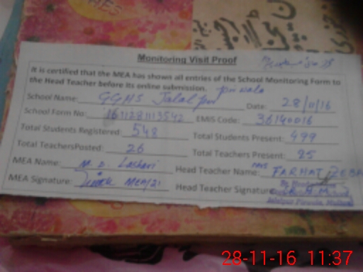 | EMIS Code: 36140016 | Name of School: GGHS JALAL PUR PIRWALA | |||