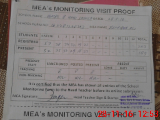| Attendance Register | Head Teacher | MEA with School | Visit Proof |