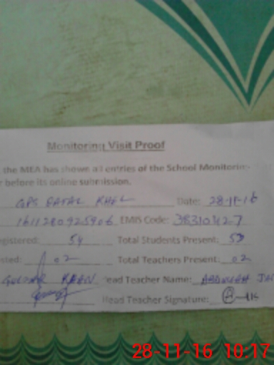 | EMIS Code: 38310427 | Name of School: GPS QATAL KHEL | |||