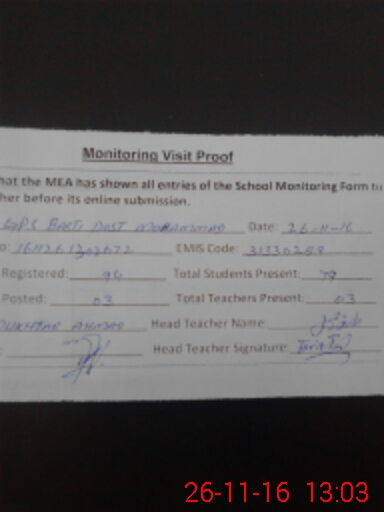 | EMIS Code: 31330289 | Name of School: GPS BASTI DOST MUHAMMAD | |||