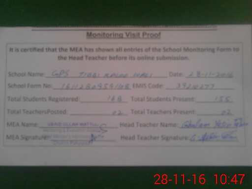 | EMIS Code: 39210277 | Name of School: GPS TIBI KALO WALI | |||