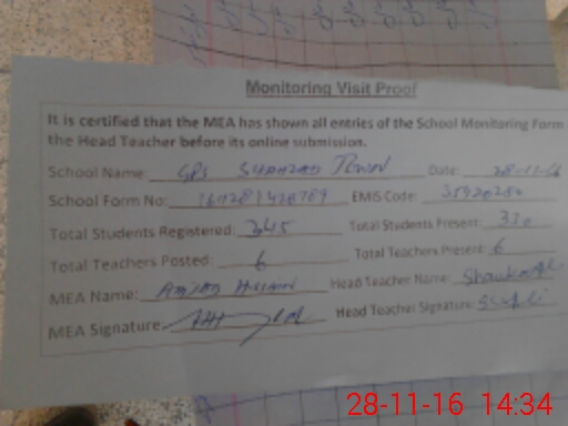 | EMIS Code: 35420250 | Name of School: GPS SHAHZAD TOWN | |||