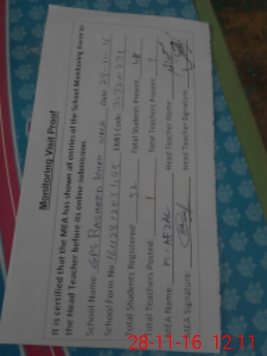 | Attendance Register | Head Teacher | MEA with School | Visit Proof |