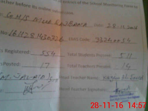 | EMIS Code: 33240054 | Name of School: GHS MUD RAJBANA | |||