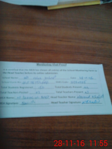 | Monitoring Date: 28-11-2016 | Start Time: 28-11-2016 11:34 AM | End Time: 28-11-2016 12:00 PM | Name of MEA: Mu**** Iz**** UlHa**** | |