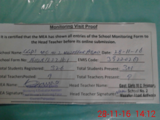 | EMIS Code: 39220267 | Name of School: GGPS MC NO. 2 MUZAFAR ABAD | |||