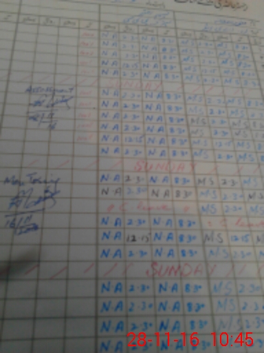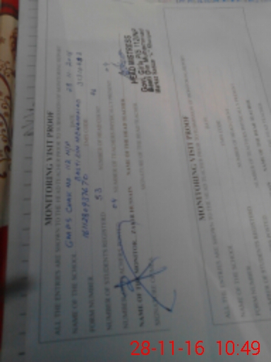 | Monitoring Date: 28-11-2016 | Start Time: 28-11-2016 09:37 AM | End Time: 28-11-2016 10:51 AM | Name of MEA: Za**** Hu**** | |