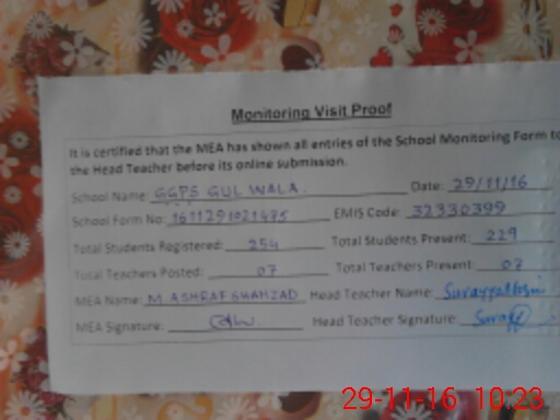 | EMIS Code: 32330399 | Name of School: GGPS GULL WALA | |||