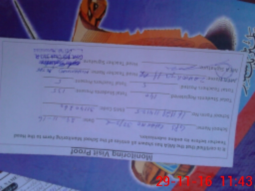 | Attendance Register | Head Teacher | MEA with School | Visit Proof |