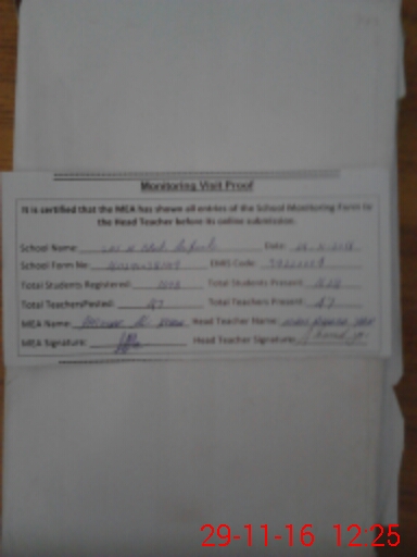 | Attendance Register | Head Teacher | MEA with School | Visit Proof |