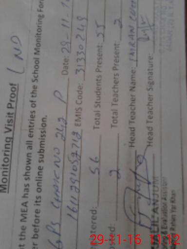 | Certified that this School was Inspected by the Undersigned MEA/DMO Today and the Information Stated Above is as Per Record. | |||||