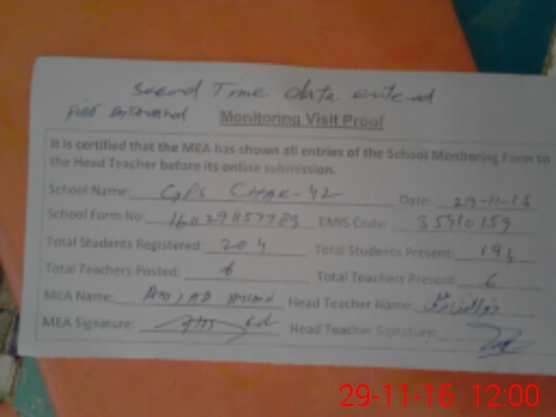 | EMIS Code: 35410159 | Name of School: GES CHAK NO 42 | |||