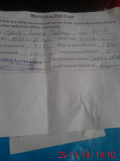| Attendance Register | Head Teacher | MEA with School | Visit Proof |