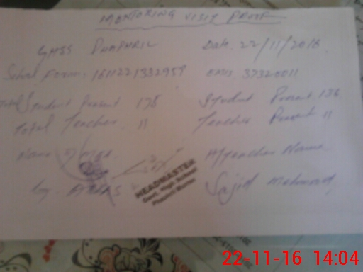 | Attendance Register | Head Teacher | MEA with School | Visit Proof |