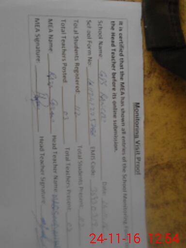 | Attendance Register | Head Teacher | MEA with School | Visit Proof |