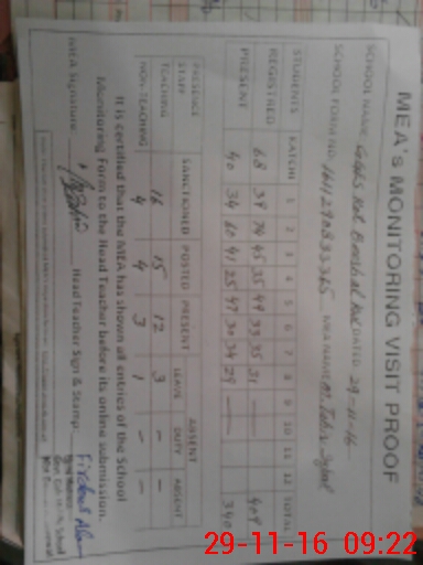 | Monitoring Date: 29-11-2016 | Start Time: 29-11-2016 08:33 AM | End Time: 29-11-2016 09:38 AM | Name of MEA: M.Ta**** Iq**** (S**** | |