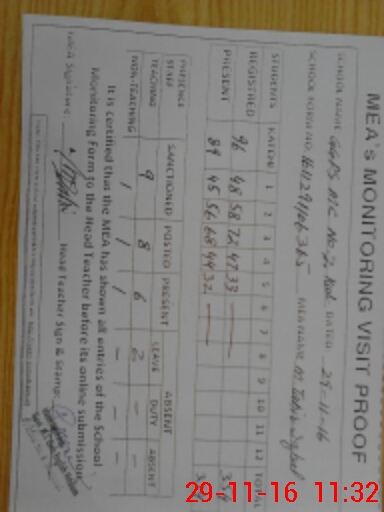 | Monitoring Date: 29-11-2016 | Start Time: 29-11-2016 11:06 AM | End Time: 29-11-2016 11:40 AM | Name of MEA: M.Ta**** Iq**** (S**** | |
