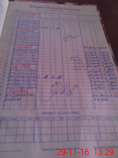 | CNIC | Full Name | Designation | R/C | Absence During Last Calender Month |