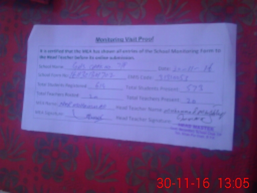 | Attendance Register | Head Teacher | MEA with School | Visit Proof |