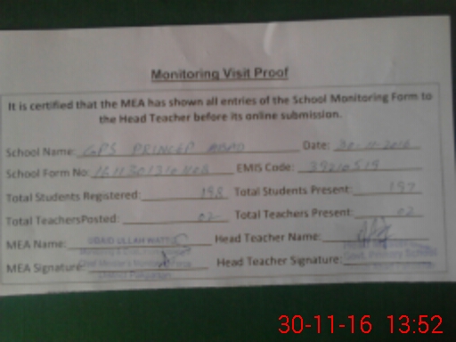 | Certified that this School was Inspected by the Undersigned MEA/DMO Today and the Information Stated Above is as Per Record. | |||||