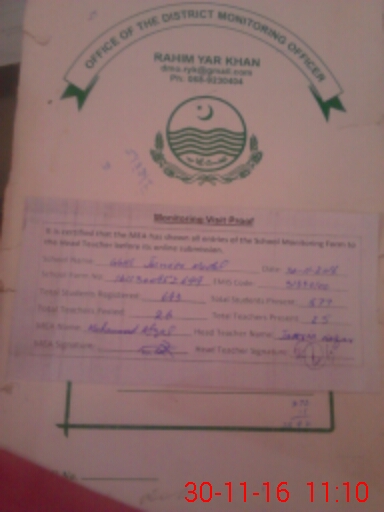 | EMIS Code: 31330100 | Name of School: GGHS MC JUNIOR MODEL R.Y.KHAN | |||