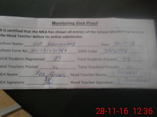 | Attendance Register | Head Teacher | MEA with School | Visit Proof |