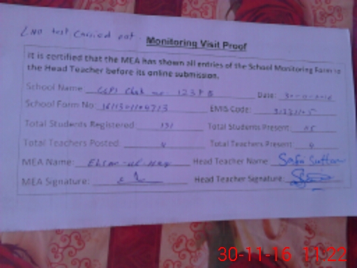 | Certified that this School was Inspected by the Undersigned MEA/DMO Today and the Information Stated Above is as Per Record. | |||||