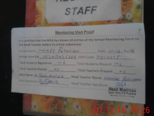 | EMIS Code: 31310375 | Name of School: GGPS PATAFIAN | |||