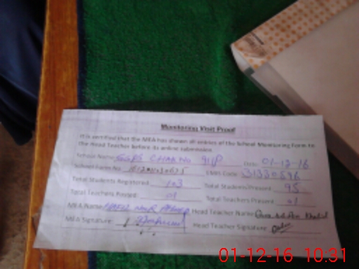 | Attendance Register | Head Teacher | MEA with School | Visit Proof |