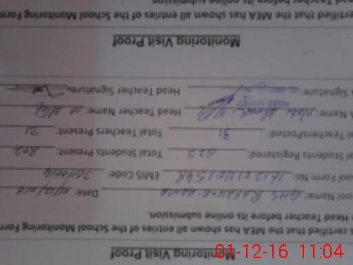| Certified that this School was Inspected by the Undersigned MEA/DMO Today and the Information Stated Above is as Per Record. | |||||