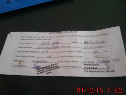 | Attendance Register | Head Teacher | MEA with School | Visit Proof |